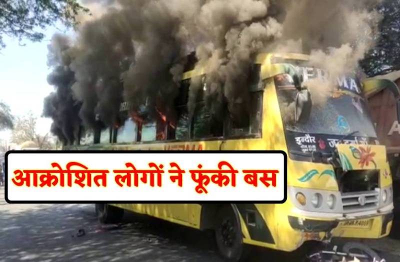 बस की चपेट में आने से किशोर की मौत, आक्रोशित लोगों ने लगाई आग, देखें वीडियो