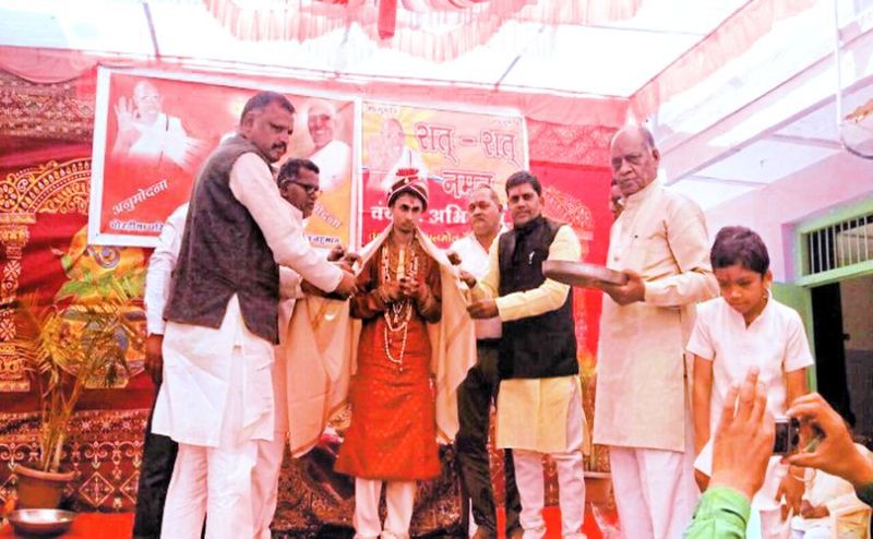 रिंगनोद. आचार्य मुक्तिचंद्र सागर सूरीश्वरजी महाराज की प्रेरणा से संयम पथ पर अग्रसर हो रहे सुचित पारलेचा का भव्य वर्शीदान वरघोड़ा निकाला गया तथा बहुमान किया गया। मंगलवार को नगर में मांगीलाल महेश कुमार चौरडिय़ा परिवार के निवास से दीक्षार्थी सुचित कुमार सुशील कुमार पारलेचा निवासी बाजना वाले का भव्य वर्शीदान वरघोड़ा निकाला गया। इसमें एक रथ पर मालवभूषण आचार्य नवरत्नसागर महाराज का चित्र एवं दूसरे रथ पर दीक्षार्थी भाई तथा एक अन्य पालकी में भगवान की प्रतिमा विराजित कर निकाली गई।