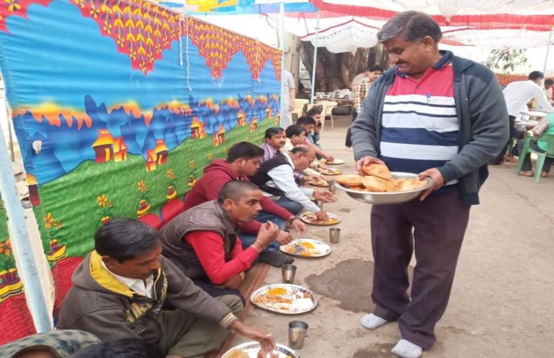 ब्राह्मण भोजन कराते माहेश्वरी समाज जन