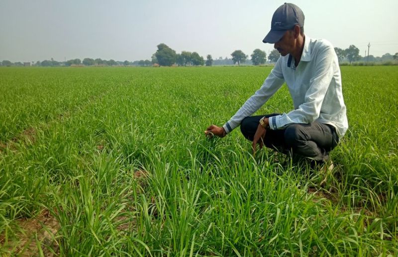 जैविक खाद से लहलहाती गेहंू की फसल दिखाते किसान प्रेमसिंह।,जैविक खाद से लहलहाती गेहंू की फसल दिखाते किसान प्रेमसिंह।