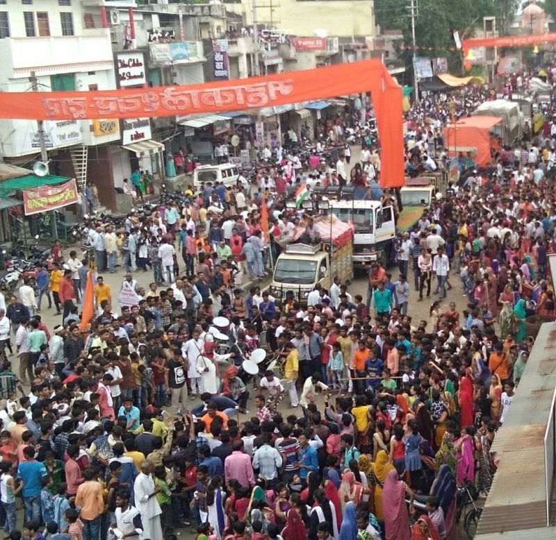 यात्रा का नगर में कई संगठनों व प्रतिष्ठानों द्वारा 32 से अधिक स्थानों पर स्वागत किया। यात्रा में आकर्षण का केंद्र केसबर ग्रुप इंदौर द्वारा नृत्य प्रस्तुती और गुजरात अहमदाबाद के प्रसिद्ध लोक नृत्य व झांकी ने भक्तों का मन मोह लिया। वृंदावन के कलाकारों ने अद्भुत नृत्य व झांकी को लोगों ने सराहा। कुक्षी के डोल और उज्जैन की गगन भेदी तोप से लगातार पुष्प वर्षा होती रही। वहीं हेली कॉप्टर से पुष्प वर्षा हुई। खरगोन के अखाड़े आकर्षण का केंद्र रहे। यात्रा के पीछे महाप्रसादी का भी वितरण कराया गया। रात 8 बजे मंदिर परिसर में महाआरती, महाप्रसादी वितरीत हुई।