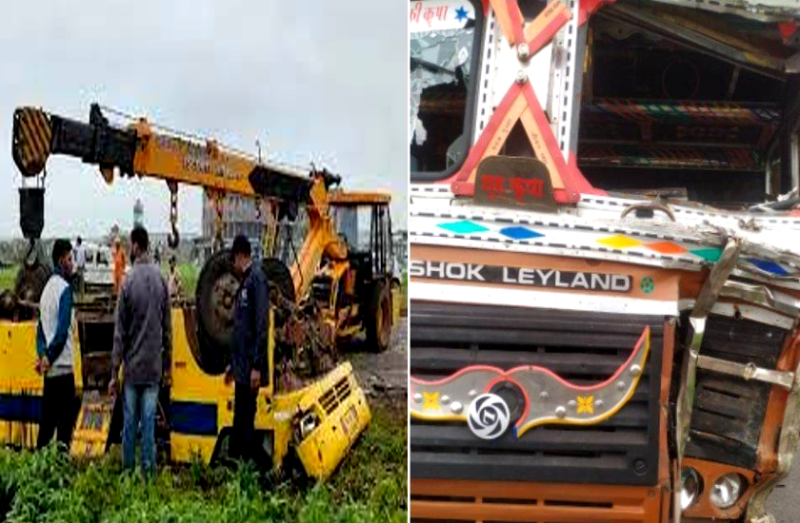 ट्रक और बस के बीच जोरदार टक्कर, 1 की मौत 30 से ज्यादा घायल, टक्कर के बाद तीन बार पलटी बस