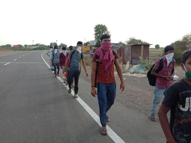 बायपास नेशनल हाईवे पर चिलचिलाती धुप में भुखे प्यासे पैदल लोगों का पलायन अब भी जारी है। लोग अपने गांव और घरों तक जाने के लिए कोई पैदल तो कोई साइकिल से सफर करने को मजबूर है। लॉकडाउन की वजह से दूसरे राज्यों गए मजदूरों पर रोजी-रोटी पर संकट आ गया है। लॉकडाउन का पहला चरण 14 अप्रैल तो खत्म गया है, लेकिन 3 मई तक समय काटना मजदूरों के लिए मुश्किल है। दिहाड़ी मजदूर गुजरात, महाराष्ट्र से पैदल ही बिहार, यूपी, राजस्थान और प्रदेश के छतरपुर तक सफर पर चल पड़े है। रोजाना सुबह दोपहर शाम तक अलग-अलग राज्यों से सैकड़ों लोग अपना सामान लेकर पलायन करने को मजबूर है। भूखे-प्यासे यह लोग बिना किसी की चिंता किए पैदल ही अपने घरो की ओर चले जा रहे है। जबकि गुजरी पंचायत सहित खलघाट, दुधी, कोठीदा, चिक्टयावड, कुंदा, ढाल, काकड़दा नेशनल हाइवे से लगी हुई है। जनहित में राहगीरों की भोजन की व्यवस्था न ही ग्राम पंचायत कर रही है न ही पुलिस। रास्ते में सामाजिक संगठन ही खाने और पानी की मदद कर देते है तो खा लेते है। राहगीरों का कहना है कि कई बार तो घंटों भूखे-प्यासे रहना पड़ता है। जबकि ग्राम पंचायतों में 30 हजार रुपए भोजन आश्रय पर खर्च करने के आदेश है।