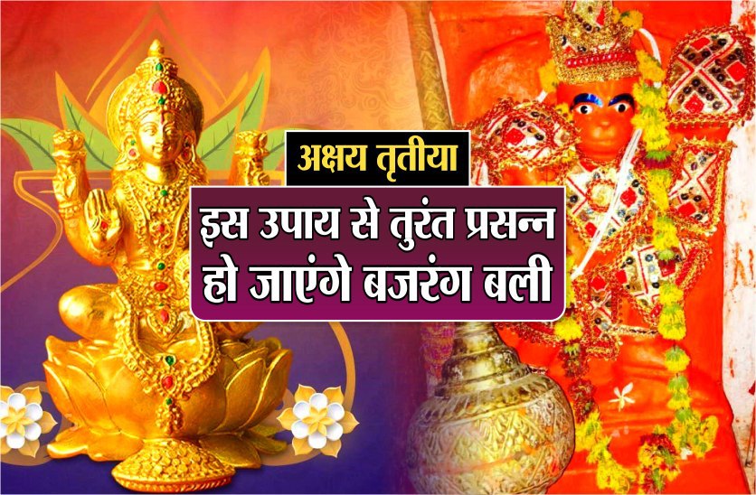 रविवार 26 अप्रैल को अक्षय ततृीया का पावन पर्व है। इस दिन भगवान लक्ष्मीनारायण के साथ राम भक्त हनुमान जी की पूजा करने से वे प्रसन्न हो जाते हैं। इसी दिन से रामायुग त्रेतायुग का आरंभ भी हुआ था। रामायुग में हनुमान जी ने भगवान राम की सेवा में अपने आप को समर्पित कर दिया था। अगर बजरंग बली की अक्षय कृपा पाना चाहते हैं तो अक्षय तृतीया तिथि के दिन ये उपाय जरूर करें। आपकी सभी कामनाएं पूरी हो जाएगी।