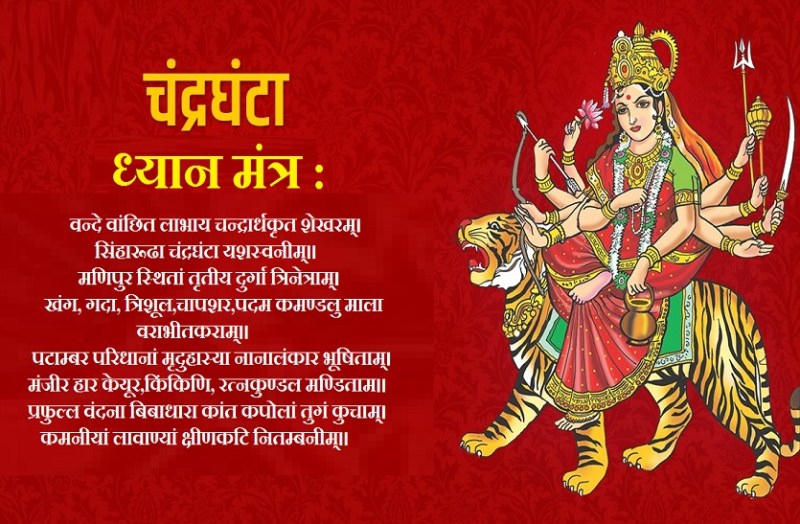 मंत्र: 2- या देवी सर्वभूतेषु मां चन्द्रघण्टा रूपेण संस्थिता। नमस्तस्यै नमस्तस्यै नमस्तस्यै नमो नमः॥
