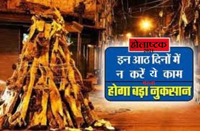 हिंदुओं के प्रमुख त्योहार में से एक होली का पावन पर्व इस महीने यानि मार्च 2021 में आने वाला है। इसके पूर्व होलाष्टक शुरू हो जाएगा। होलाष्टक प्रत्येक वर्ष होली के करीब आठ दिन पहले शुरू हो जाता है। हिंदू पंचांग के मुताबिक इस वर्ष होलाष्टक फाल्गुन शुक्ल पक्ष की अष्टमी तिथि से शुरु हो जाएंगे। ऐसे में यह 22 मार्च से शुरू होकर 28 मार्च तक चलेंगे। दरअसल ज्योतिष शास्त्र में होली से आठ दिन पूर्व शुभ कार्यों के करने की मनाही होती है। होली से पूर्व के इन आठ दिनों को होलाष्टक कहा जाता है।