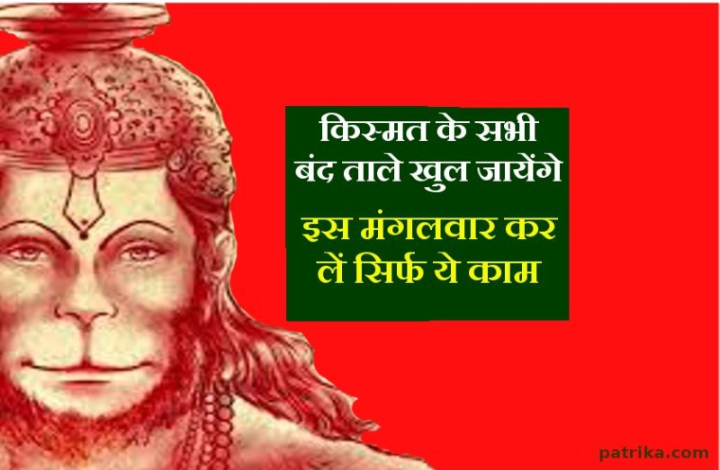 मंगल का दिन सभी अमगंलों को दूर करने का दिन माना जाता हैं, इसी दिन मंगलमूर्ति श्री हनुमान जी का जन्म भी ही हुआ था, और उन्होंने जन्म के बाद से ही दूष्टों का संहार करना शुरू कर दिया था, ऋषि मुनियों के सहायता व सुरक्षा सदैव करते थे, इसी से प्रसन्न होकर ऋषियों ने श्री हनुमान को आशीर्वाद दिया था की जो कोई भी मारूति हनुमान की शरण में आयेगा उनके सारे संकटों का नाश हनुमान कर देंगे । कहा जाता हैं कि हनुमान जी की पूजा पूर्ण श्रद्धा से की जाये तो वे भक्तों की परेशानियों, संकटों से रक्षा करते है । अगर आपकी किस्मत के सभी ताले बंद पड़े हो कहीं से कोई रास्ता नहीं मिल रहा हो तो इस मंगलवार के दिन ये काम केवल एक बार करने से आपकी सभी मनोकामनाएं भी पूरी हो जाता हैं ।