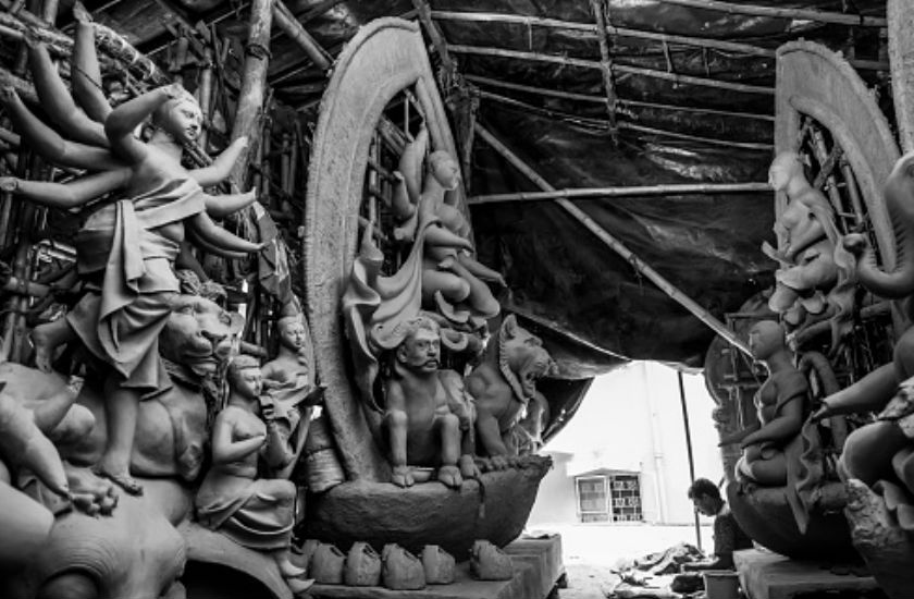 मान्यताओं के अनुसार, मां दुर्गा की मूर्ति बनाने के लिए चार चीजें बहुत जरूरी है। इनके बिना मां दुर्गा की मूर्ति का निर्माण नहीं हो सकता है। गंगा तट की मिट्टी, गौमूत्र, गोबर और तवायफ के कोठे की मिट्टी का इस्तेमाल मां दुर्गा की मूर्ति के निर्माण में किया जाता है। अगर इन चार चीजों का इस्तेमाल नहीं किया गया है तो मूर्ति निर्माण पूर्ण नहीं मानी जाती है।
