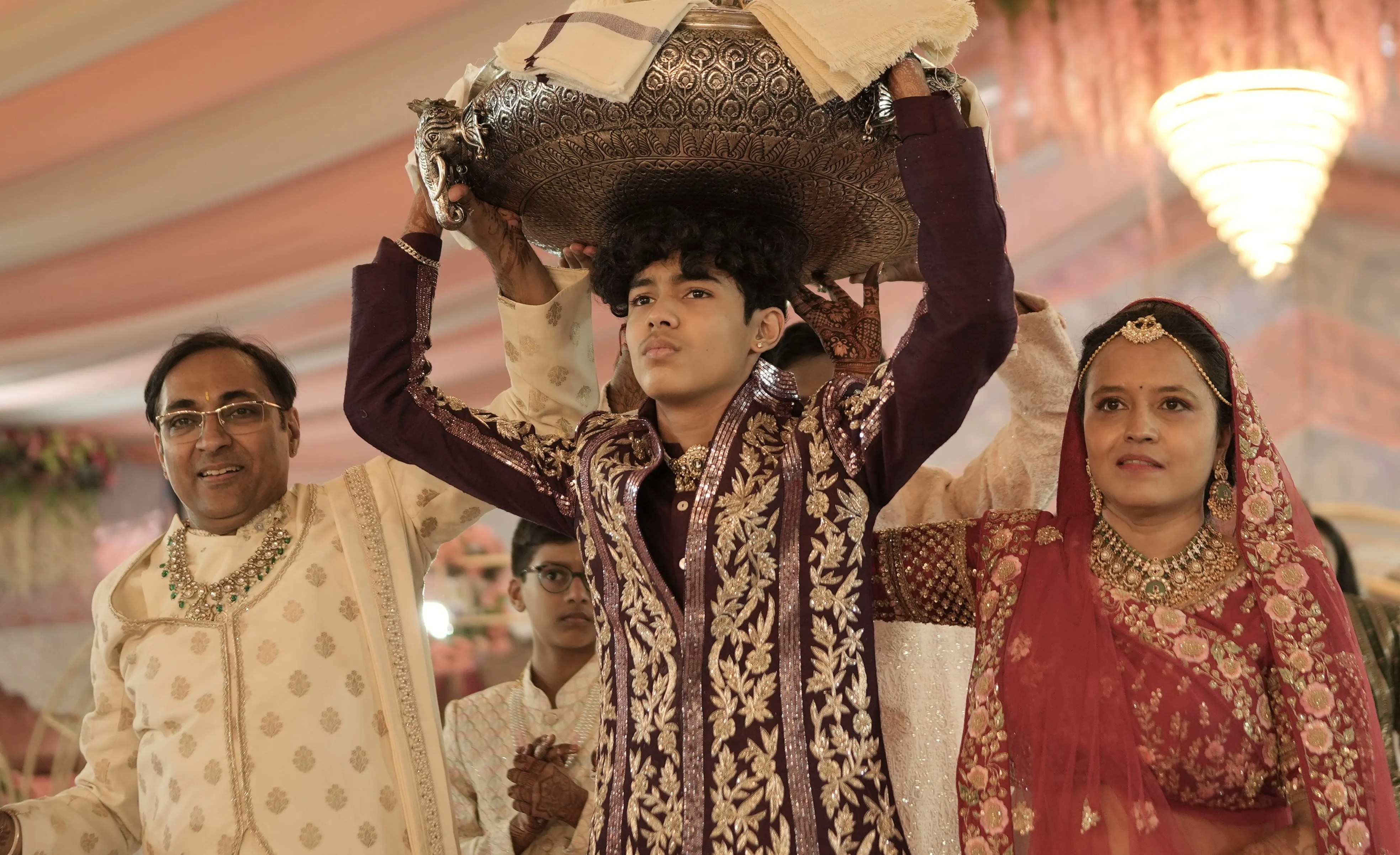 इसके पश्चात विभिन्न बैण्ड, नृत्य मंडलियां, भगवान के रथ, पालखी, अश्व सवार, चतुर्विध संघ, वर्षीदान करते हुए दीक्षार्थी का रथ, दक्षिण भारत के मंगल वाद्य-वृंद, केरल की नादस्वर मंडली, जैन शासन का ध्वज लिए युवा, भगवान और गुरु को चंवर डुलाते श्रावक, विभिन्न संघों के महिला मंडल, पारंपरिक वेशभूषा में श्रावक-श्राविकाएं, राजस्थानी साफे पहने गणमान्य व्यक्ति तथा मुंबई से आए दीक्षार्थी के परिजन वरघोडे़ की शोभा बढ़ा रहे थे। लगभग चार किलोमीटर लंबे इस वरघोडे़ में शंकरपुरम् युवक मंडल, महिला मंडल सहित शहर के अनेक संघों और संगठनों ने सेवाएं प्रदान कीं।