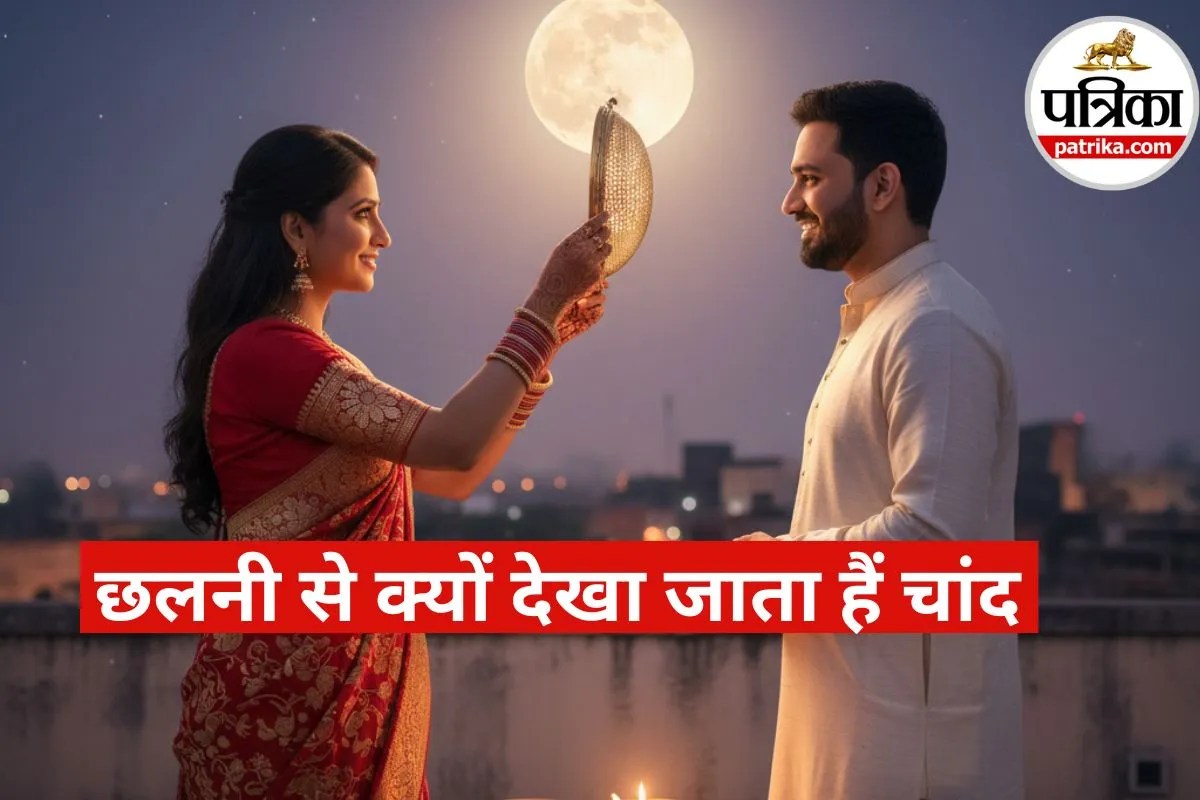 दिन भर निर्जला व्रत रखने के बाद शाम को महिलाएं सोलह श्रृंगार से सजी-धजी पूजा की तैयारी करती हैं। पूजा की थाली में दीपक, मिठाई, करवा (जल का पात्र) और छलनी सजाई जाती है। रात में जब चांद निकलता है, तो महिलाएं छलनी से पहले चंद्रमा को देखती हैं और फिर उसी छलनी से अपने पति का चेहरा निहारकर व्रत खोलती हैं। यह परंपरा वर्षों से चली आ रही है, लेकिन क्या आप जानते हैं कि करवा चौथ पर महिलाएं छलनी से चांद और पति को क्यों देखती हैं? इसके पीछे एक गहरा धार्मिक और पौराणिक कारण है।