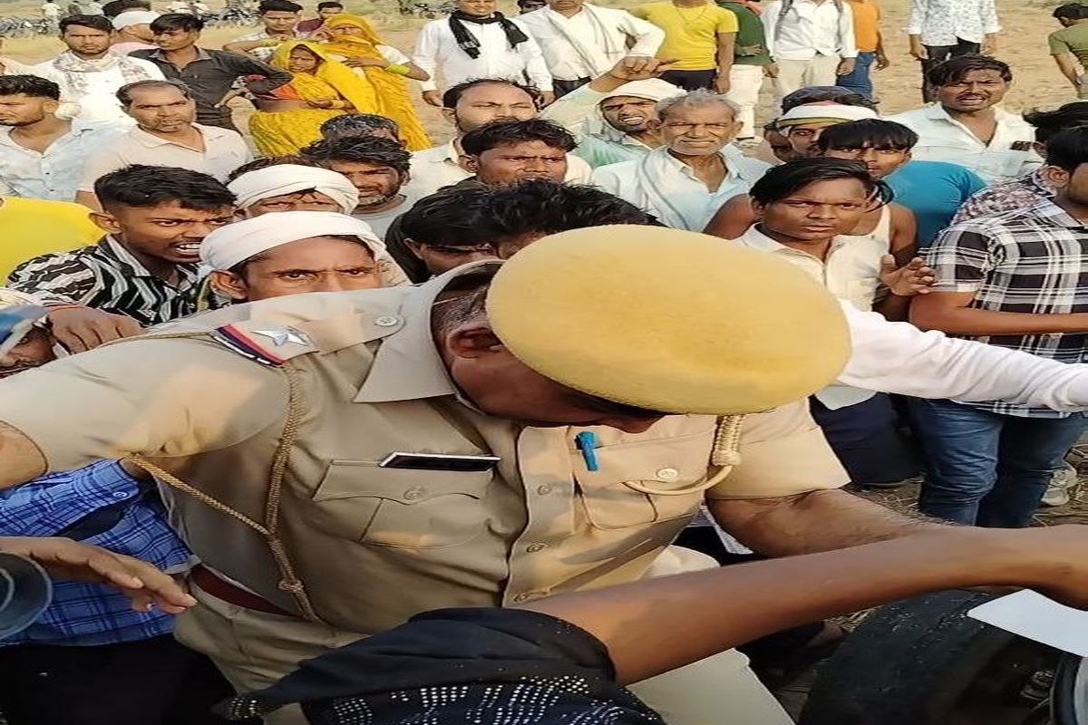 ट्रेक्टर रोकने पर भीड़ गुस्साई, नीचे उतरे थाना प्रभारी