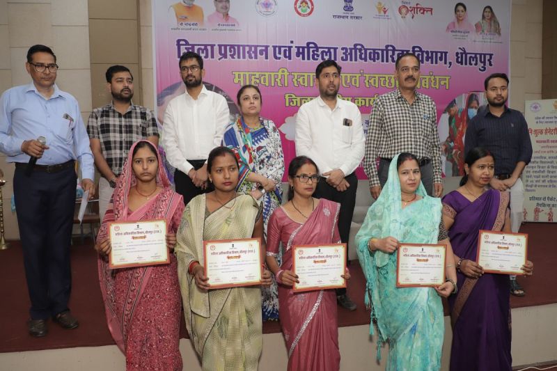 धौलपुर. विश्व माहवारी स्वास्थ्य एवं स्वच्छता प्रबंधन की जिला स्तरीय एक दिवसीय कार्यशाला का जिला कलक्टर श्रीनिधि बी टी के निर्देशन में नगर परिषद सभागार में आयोजन हुआ। कार्यशाला का शुभारंभ सहायक निदेशक महिला अधिकारिता विभाग जयप्रकाश निराणिया ने करते हुए विभागीय योजनाओं की जानकारी प्रदान की एवं अतिथियों एवं प्रतिभागियों का स्वागत सत्कार किया। कार्यशाला में मुख्य कार्यकारी अधिकारी जिला परिषद एएन सोमनाथ ने ग्रामीण इलाकों में माहवारी सम्बन्धी जागरूकता पर बल दिया तथा ग्राम साथिनो को पंचायत स्तर पर बैठने की व्यवस्था करवाने के निर्देश दिए। साथ ही विभागीय योजनाओं में उत्कृष्ट कार्य करने वाली 30 ग्राम साथिनों एवं मंचासीन अतिथियों को प्रमाण पत्र एवं दैनिक डायरी देकर सम्मानित किया।