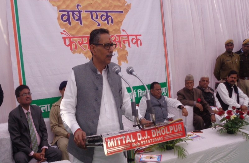 राज्य सरकार ( Rajasthan Government ) के कार्यकाल के एक वर्ष पूर्ण होने के उपलक्ष्य में शुक्रवार को धौलपुर में तीन दिवसीय जिला स्तरीय कार्यक्रमों का आगाज 'वर्ष एक फैसले अनेक' विकास प्रदर्शनी से हुआ। तीन दिन तक चलने वाले कार्यक्रमों में रन फॉर निरोगी राजस्थान, जागरूकता कार्यशाला समेत प्रदेश के विकास को दर्शाने वाले अन्य आयोजन शामिल हैं। धौलपुर के कलक्ट्रेट परिसर स्थित सूचना केन्द्र में विकास प्रदर्शनी का उद्घाटन पर्यटन एवं देवस्थान एवं धौलपुर जिला प्रभारी विश्वेन्द्र सिंह ( Minister Vishvendra Singh ) ने किया।