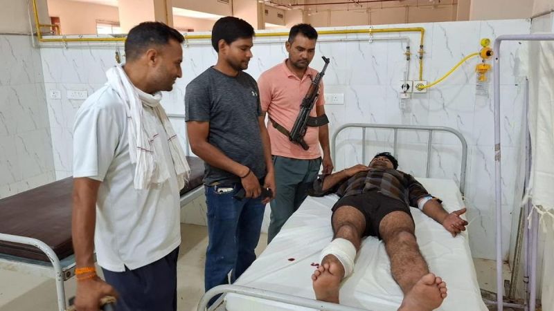धौलपुर. बाड़ी सर्किल के थाना सोने का गुर्जा इलाके के बाबू महाराज मंदिर के पीछे जंगल में पुलिस की इनामी बदमाश बंटी गुर्जर से पुलिस दल की मुठभेड़ हो गई। बदमाश बंटी ने पुलिस पार्टी पर फायरिंग की, जिस पर पुलिस ने भी जवाब दिया। मुठभेड़ में पैर में गोली लगने से बदमाश बंटी घायल हो गया। पुलिस ने घायल को हिरासत में लेकर इलाज के लिए जिला अस्पताल में भर्ती कराया है। पकड़े बदमाश पर 35 हजार रुपए का इनाम घोषित था। कब्जे से 315 बोर सिंगलशॉर्ट बन्दूक एवं 11 जिंदा कारतूस बरामद किए हैं।