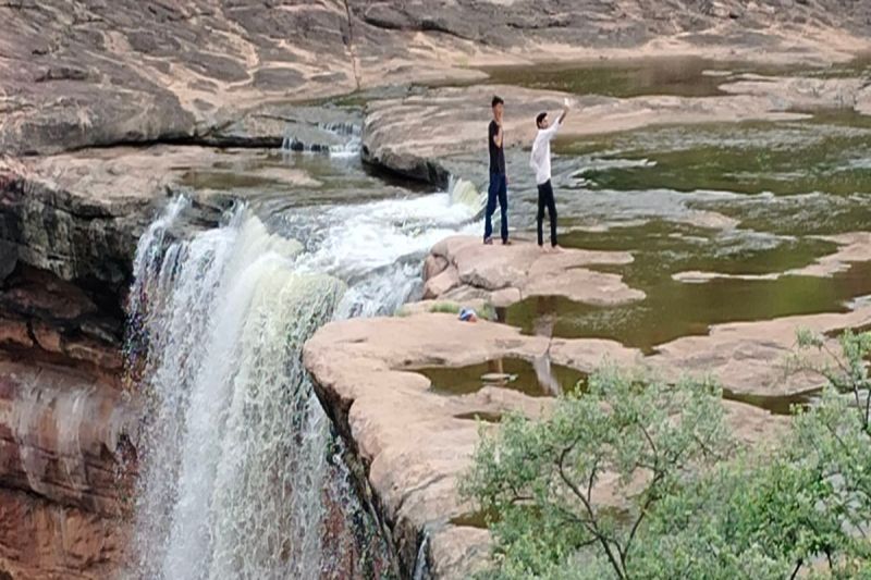 पुलिस की सख्ती का युवा वर्ग पर कोई असर नही पड़ रहा है। पुलिस ने सुरक्षा को लेकर खतरनाक पांइट से सेल्फी व रील बनाने की पाबंदी लगाई हुई है। लेकिन दमोह झरने पर युवा वर्ग झरने के समीप सेल्फी व रील बनाने के चक्कर में जान जोखिम में डालते देखे गए। पत्रिका संवाददाता ने झरने के समीप सेल्फी लेते दो युवाओं की तस्वीर कैमरे में कैद कर ली। जबकि इस जगह सेल्फी व रील बनाना खतरे से कम नही था। फिसलन एवं ढ़लान होने के कारण खतरा अत्यधिक था।
