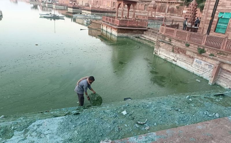 महंत कृष्णदात ने बताया कि श्रद्धालुओं के साथ मिलकर कुण्ड और घाटों पर बिखरी गंदगी को साफ कराया जा रहा है। यह कार्य पिछले तीन दिनों से जारी है। कुण्ड में फैली गंदगी के साथ काई को भी निकाला जा रहा है। और पानी पड़े कलंगी, मोहरी आदि के अवशेषों को भी इक_ा कर परिसर से बाहर फेंका जा रहा है। और कुंड के पानी को साफ किया जा रहा है। जिससे यहां आने वाले श्रद्धालुओं और सैलानियों को कोई परेशानी ना हो।
