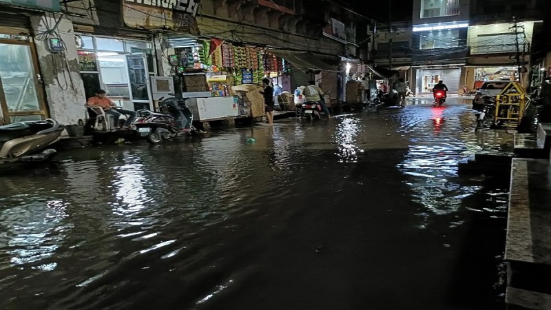 धौलपुर. बरसात से सडक़ पर भरा पानी।
