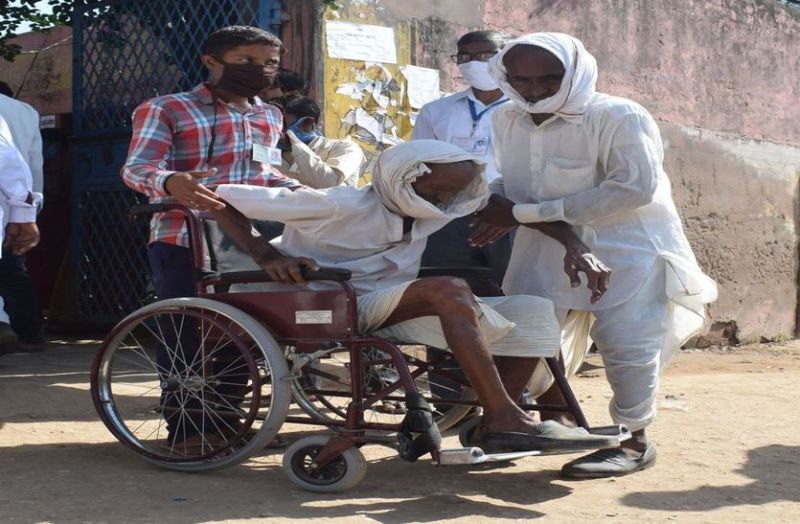दिव्यांगों ने भी किया मतदान, प्रत्येक बूथ पर की गई व्हीलचेयर और रैंप की व्यवस्था