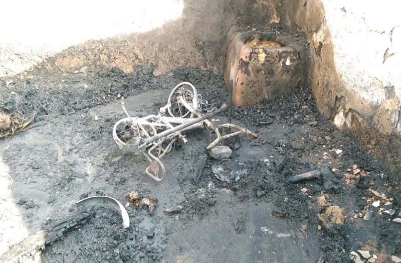 अज्ञात कारणों से ३ छप्परपोश मकानों में लगी आग, बच्चों की साइकिल भी जली