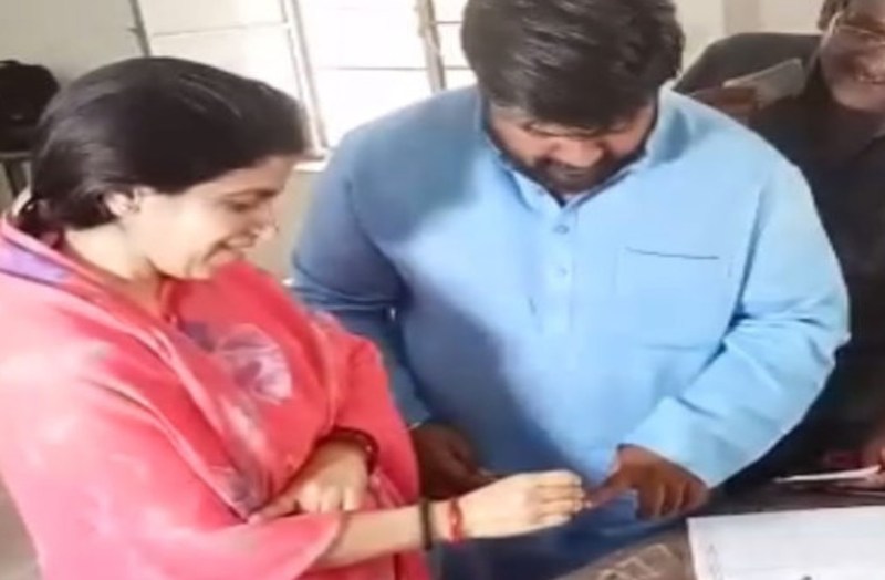 लोकसभा चुनाव ( lok sabha election 2019 ) के मध्यनजर राजस्थान में 12 सीटों पर दूसरे चरण का मतदान जारी है। सभी नेताओं समेत आम लोग उत्साह से मतदान करते दिखाई दे रहे हैं। प्रदेश में 1 बजे तक 42.60 प्रतिशत मतदान हो चुका है। धौलपुर में प्रदेश की पूर्व सीएम वसुंधरा राजे के पुत्र दुष्यंत सिंह ( dushyant singh ) ने पंचायत समिति स्थित मतदान केन्द्र में अपना वोट डाला। उनके साथ पत्नी निहारिका सिंह ( Niharika Singh ) भी थी। दुष्यंत जब वोट डालने बूथ पर पहुंचे तो पत्नी निहारिका ने उनकी अंगुली पर स्याही का निशान लगाया। ये सब नजारा देख वहां मौजूद हर कर्मचारी मुस्कुरा उठा। आपको बता दें कि दुष्यंत सिंह खुद भी भाजपा के प्रत्याशी है और झालावाड़-बारां लोकसभा क्षेत्र से चुनावी मैदान में खड़े हैं। उनका सीधा मुकाबला कांग्रेस प्रत्याशी प्रमोद शर्मा ( ष्टशठ्ठद्दह्म्द्गह्यह्य ष्टड्डठ्ठस्रद्बस्रड्डह्लद्ग क्कह्म्ड्डद्वशस्र स्द्धड्डह्म्द्वड्ड ) से है।