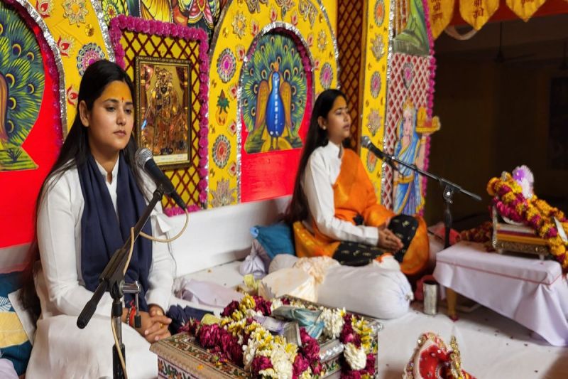 - निधि और नेहा दोनों बहनें करती भागवत कथा