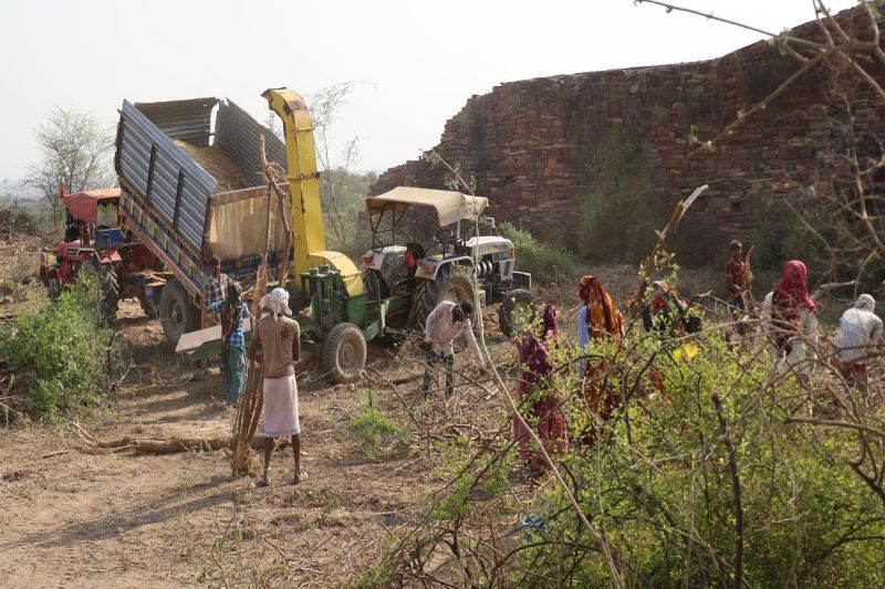 वन विभाग की ओर से गत दिनों यहां किले के करीब 12 से 14 बीघा क्षेत्रफल में उग रहे बिलायती बबूल को हटाने के लिए ठेका दिया था। जिस पर ठेकेदार की ओर से यहां इलेक्ट्रिक कटर मशीनों के जरिए बिलायती वबूल को पहले कटवाया और फिर उनके कुछ छोटे-छोटे टुकड़े करवा कर गोदाम पर भिजवाया जा रहा। यहां पर बड़ी संख्या में श्रमिक भी लगे हुए हैं। जो बबूल के पेड़ों में से लकड़ी की छंटाई कर रहे हैं।