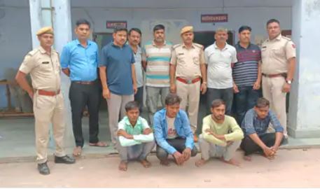 पुलिस ने मामले में आरोपी भरत सिंह पुत्र उत्तम सिंह जाति बघेल निवासी गोपालपुरा थाना राजाखेड़ा, देशराज पुत्र छोटेलाल जाति बघेल निवासी गोपालपुरा थाना राजाखेड़ा, कन्हैया लाल वर्मा पुत्र श्रीनिवास निवासी महाराज सिंह की ठार छीतापुर थाना राजाखेड़ा और राजेश पुत्र जसवंत सिंह निवासी महाराज सिंह की ठार छीतापुरा थाना राजाखेड़ा को गिरफ्तार किया है। मामले में पूछताछ जारी है।