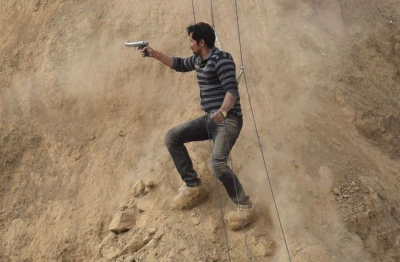 धौलपुर. धांय...धांय...धांय...और भाग निकला डकैत निर्भय गुर्जर। जी हां, ऐसा ही कुछ हुआ बुधवार को भैंसना के ताल स्थित बीहड़ों। पुलिस की तड़ातड़ गोलियों के बीच बीहड़ से रपटते हुए डकैत निर्भय गुर्जर भागने में सफल रहा और गोलियों की आवाज से बीहड़ गूंज उठे। यह दृश्य था वेबसीरिज इंस्पेक्टर अविनाश की शूटिंग का। इस सीन को बुधवार को बीहड़ों मे फिल्माया गया। यूपी पुलिस के इंस्पेक्टर बने रणदीप सिंह हुड्डा ने डकैत निर्भय पर गोलियों की बौछार की। सीन को फिल्माने के लिए कई बार रिटेक करना पड़ा। इस सीन को देखने के लिए सैकड़ों की संख्या में स्थानीय लोगों की भीड़ लगी रही।