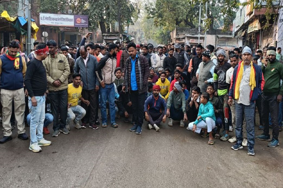 धौलपुर. प्रदर्शन करते वाल्मीकि समाज के लोग।