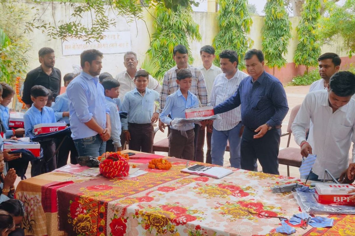धौलपुर. बाड़ी उपखंड के राजकीय उच्च माध्यमिक विद्यालय कछपुरा टोंटरी में आयोजित कार्यक्रम में मुख्य अतिथि एडीपीसी महोदय जितेंद्र सिंह जादौन के साथ स्थानीय ग्राम पंचायत सरपंच विजय कुमार जी रहे। विद्यालय प्राचार्य जगदीश पहाड्यिा ने बताया कि विद्यालय स्टाफ ने स्वयं भामाशाह बनकर 1 लाख 52 हजार रुपए की राशि के विद्यालय में अध्यनरत 300 विद्यार्थियों के लिए स्कूल बैग, टाई बेल्ट, जूते आदि जरूरमत सामग्री वितरित की गई। विद्यालय प्राचार्य बनवारी लाल मीणा, जगदीश पहाडिय़ा, राजस्थान प्राथमिक एवं माध्यमिक शिक्षक संघ जिला अध्यक्ष मनोज मीणा, वरिष्ठ अध्यापक जितेंद्र कुमार एवं बबलू कश्यप अध्यापक द्वारिका प्रसाद मीणा, सुलभ वर्मा, प्रदीप गोस्वामी, मुकेश चंद मीणा, भगवान दास, हंसराज स्वामी, राजीव कुमार भागौर, रेनू मंगल की सहयोग राशि से बच्चों के लिए स्कूल बैग, जूते, टाइ बैल्ट भेंट किए गए।