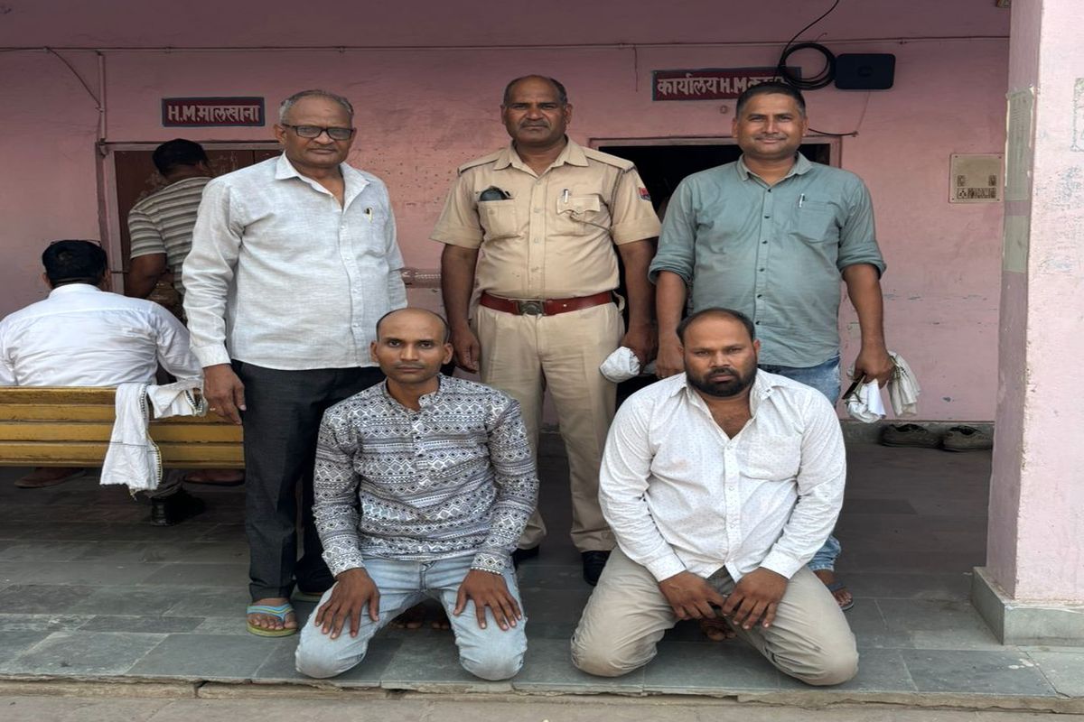 dholpur.राजाखेड़ा थाना पुलिस ने खेतों पर एकत्रित लोगों पर फायरिंग कर जानलेवा हमले के मामले में दो आरोपियों को गिरफ्तार कर लिया है। थानाधिकारी रामकिशन यादव ने बताया कि बदमाश धु्रव उर्फ घंटोली पुत्र रामसहाय ठाकुर 28 साल निवासी धारापुरा थाना राजाखेडा भीकम सिंह उर्फ दाउजी पुत्र विद्याराम ठाकुर 34 निवासी गढी आच्छेलाल थाना राजाखेड़ा को गिरफ्तार किया है।