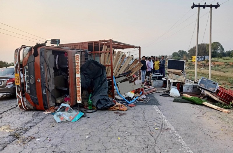 चालक को आई झपकी, ट्रक पलटने से दो दर्जन लोग दबे