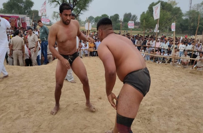 कंस मेले में पहलवानों ने दिखाए दाव पेच, बराबरी रही कुश्ती