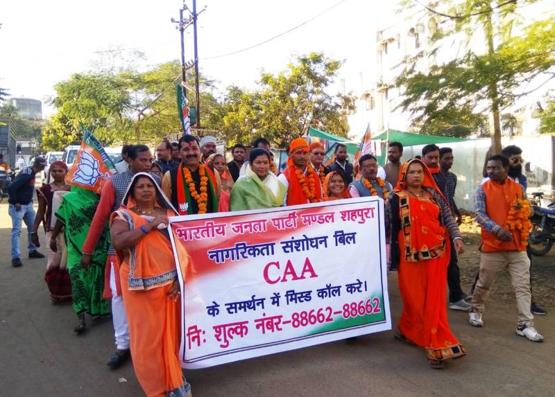 शहपुरा. नागरिकता संशोधन कानून को लेकर भाजपा द्वारा चलाये जा रहे देशव्यापी जन जागरूकता अभियान के तहत शहपुरा नगर में राज्यसभा सांसद संपतिया उइके व नवनिर्वाचित भाजपा जिला अध्यक्ष नरेंद्र राजपूत के प्रथम नगर आगमन पर भाजपा कार्यकर्ताओं ने आतिशबाजी कर फूलमाला से आत्मीय व भव्य स्वागत किया गया। इसी तारतम्य में रेस्ट हाउस से मंडी प्रांगण तक विशाल जागरूकता रैली निकालकर मंडी में जनसभा का आयोजन किया गया। इस दौरान कांग्रेस द्वारा सीएए कानून को लेकर फैलाये जा रहे भ्रम को दूर कर उपस्थित नागरिकों को जागरूक किया गया। कार्यक्रम में सभी वरिष्ठ भाजपा कार्यकर्ताओं का स्वागत कर उपस्थित नागरिकों को सीएए कानून के विषय में जागरूक किया गया। भाजपा जिलाध्यक्ष नरेन्द्र सिंह राजपूत ने कहा की पार्टी के द्वारा दिए गए कार्यो को निष्ठापूर्वक सबको साथ लेकर सभी कार्यकर्ताओ का सम्मान बना रहे इन्ही भावनाओ के साथ सम्पन्न करूॅगा। राज्यसभा सांसद सम्पतिया उईके ने कांग्रेस के नेताओ पर तंज कसा और कहा कि अल्पसंख्यको के हितैषी होने का दावा करती कांग्रेस आज सीएए के समर्थन पर अपना दोहरा चरित्र दिखा रही है। जिससे साफ है कि उन्हें पड़ोसी देशों के शोषित, पीडित लोग नजर नहीं आ रहे। इस तरह की दोहरी राजनीतिकरण मानसिकता वाली कांग्रेस का हम विरोध करते है। पूर्व केबिनेट मंत्री ओमप्रकाश धुर्वे ने कांग्रेस सरकार पर जमकर निशाना साधा और कहा कि प्रदेश सरकार ने केबिनेट मे 2000-2500 शराब की दुकान खोलने का फैसला लिया है। समझ मे नही आ रहा है ये मध्यप्रदेश को मद्यप्रदेश बनाना क्यो चाह रहे है। राजस्व संग्रहण के नाम पर नागरिको के स्वास्थ्य, महिलाओ की सुरक्षा से खिलवाड़ कर रहे है। उपरोक्त जनजागरूकता कार्यक्रम में वरिष्ठ नेता अशोक अवधिया, ज्ञानदीप त्रिपाठी, घनश्याम कछवाहा, अनूप गुप्ता, कमल अग्रवाल, दुलीचंद उरैती, विष्णु अवधिया, श्याम गुप्ता, महिला मोर्चा अध्यक्ष गिरिजा कारपेंटर, सुमन साहू, अवधराज बिलैया, चंद्रशेखर नायक, बद्री साहू, दुर्गेश साहू, हरीश राय, संतोष अग्रवाल, सुरेन्द्र श्रीवास्तव, हर्षवर्धन कटारे, राकेश परस्ते, सत्यम पाठक, राहुल रैकवार, नितिन गुप्ता, सलभ साहू, सुरेन्द्र साहू, संदीप गौलिया, बाबा ठाकुर, अरविन्द श्रीवास्तव, हीरालाल साहू, रामलाल रजक समेत विशाल जनसमूह उपस्थित रहा।