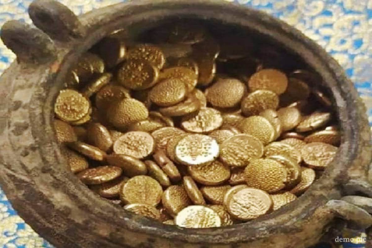 किसान गणेश मंगलवार दोपहर जंगल की ओर बकरियां चरा रहा था। तभी उसकी नजर जमीन में दबी एक चमकदार वस्तु पर पड़ी। जिज्ञासावश उसने उस जगह की खुदाई की, तो मिट्टी में गड़ा हुआ एक मिट्टी का हंडा बाहर निकला। हंडे के अंदर कई पुरानी मुद्राएं भरी हुई थीं। मुद्राएं देखकर गणेश घबरा गया और यह सोचकर कि इसमें कोई बुरी शक्ति हो सकती है, उसने हंडा गांव के कबाड़ी को सौंप दिया।