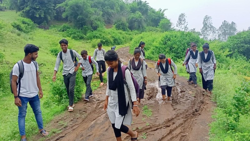 Students reaching college through muddy road, no one took care even after 5 years