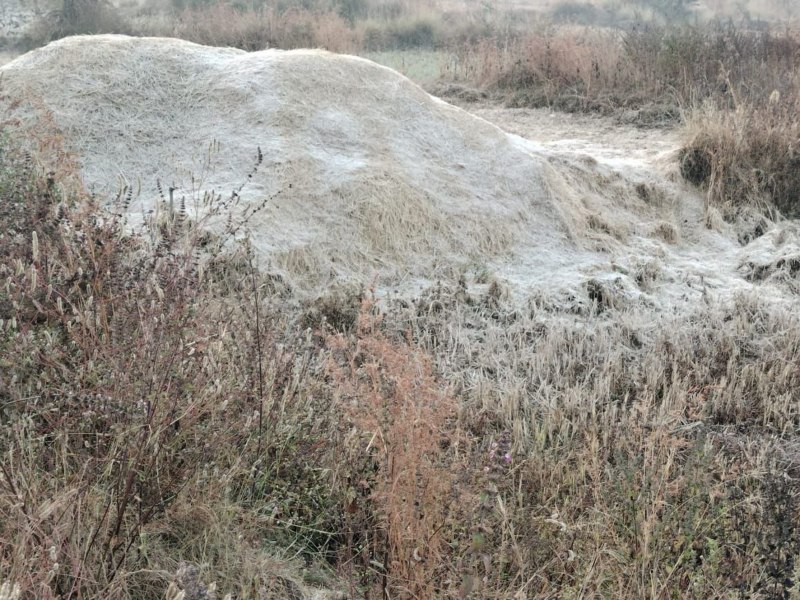 डिंडौरी/अमरपुर. जनपद पंचायत अमरपुर क्षेत्र में वर्तमान समय में पड़ रही ठंडी के कारण खेत खलिहानों में सुबह के समय बर्फ की सफेद चादर जैसा नजारा देखने को मिला रहा है। खलिहान में रखे धान के पैरे के ढेर तो सुबह ऐसे नजर आते हैं मानो जैसे बर्फ के पहाड़ हो। वहीं सुबह के समय मानो ऐसा महसूस होता है कि आसमान से ठंडे पानी की बौछार की जा रही हो। किसानों ने बताया कि इससे दलहन की फसलों पर प्रतिकूल प्रभाव पड़ रहा हैं। अरहर के कुछ पौधे तो सूखे भी दिखाई देने लगे हैं जिसे ग्रामीण क्षेत्र के किसान खर्रा मार गया कहते हैं।
