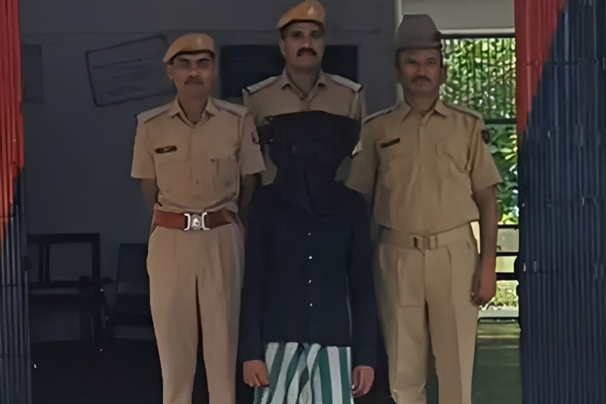 पुलिस की गिरफ्त में नकाबपोश आरोपी (फोटो: पत्रिका)