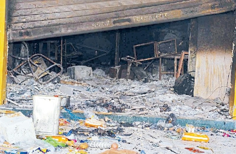 एक के बाद एक दुकानों के तोल टूटने की आवाजे आने लगी। पर, जाने है जहाने है यह सेाचे लोग घरों में ही दुबके रहे। कंगन स्टोर, किराणा, इलेक्ट्रेनिक्स एवं लोहे की दुकानों में तोड़फोड़ कर एक दो दुकानों में आग भी लगा दी। एक दुकान में बुजुर्ग दंपती आग के बीच फंस गए थे। कॉलोनी के कुछ साहसी युवकों ने पीछे के रास्ते के दरवाजे खोल कर दोनों को बचाया। लूटपाट एवं आगजनी के बाद उपद्रवी वापस पहाड़ी पर चढ़ गए। लेकिन उनका डर और दहशत अब भी है।