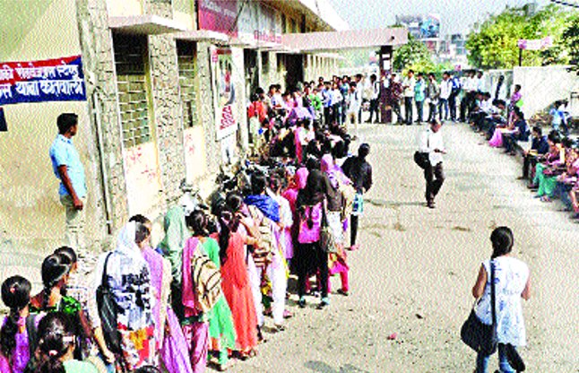 सुबह दस बजते-बजते शहर सहित ग्रामीण क्षेत्रों से परीक्षार्थी पहुंचे। इससे कॉलेज के आसपास स्थित कम्प्यूटर संचालकों एवं बैंकों के बाहर परीक्षार्थियों की बड़ी-बड़ी कतारे लग गई। बस स्टैंड परिसर में स्थित बैंक के बाहर छात्र-छात्राओं की लम्बी-लम्बी दोपहर तक दिखी। परीक्षार्थियों ने बताया कि विश्वविद्यालय की ओर से स्नातक द्वितीय एवं तृतीय वर्ष तथा स्नातकोत्तर के परीक्षा आवेदन जमा लिए जा रहे हैं। एक साथ तीन कक्षाओं के आवेदन भरवाए जाने से बड़ी संख्या में अभ्यर्थी हो गए हैं। परीक्षा आवेदन के लिए दिन भी काफी कम मिले हैं।