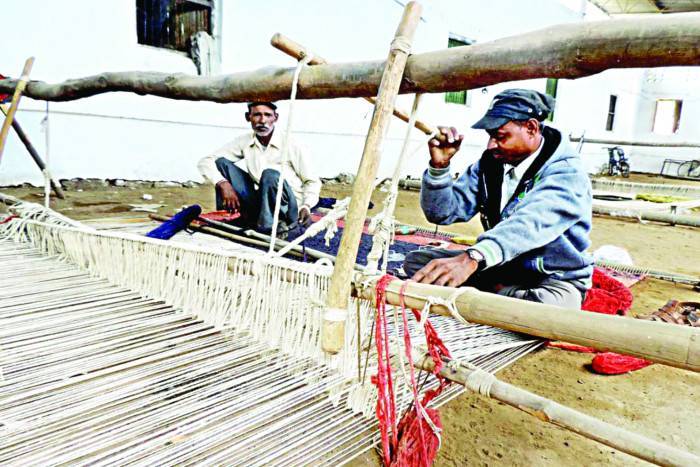 कालीन जैसी दिखने वाली इन फर्श-दरियों को बनाने में राजस्थान सेवा