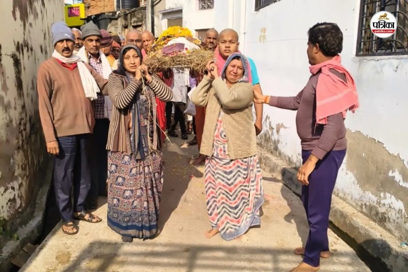 कोकापुर. पादरा में मां की अंर्थी को बेटियो ने दिया कंधा। फोटो पत्रिका