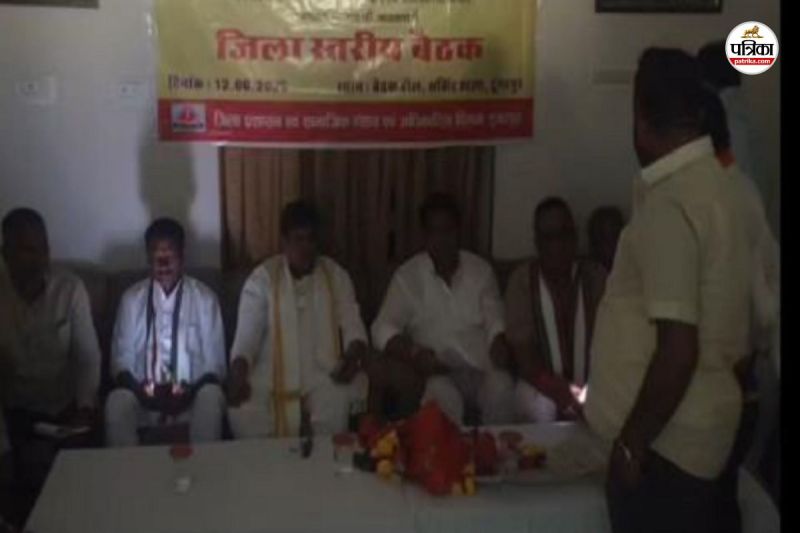 डूंगरपुर में मोबाइल की रोशनी में अधिकारियों की बैठक लेते सामाजिक न्याय एवं अधिकारिता विभाग के मंत्री अविनाश गहलोत। फोटो पत्रिका