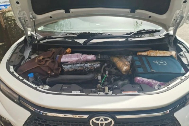 शराब तस्करों की ओर से कार के बोनट में छिपाई गई शराब। फोटो पत्रिका