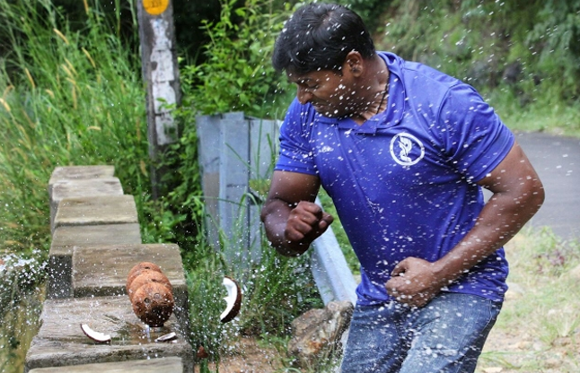 बिना रुके 1 मिनट में 122 नारियल फोड़े