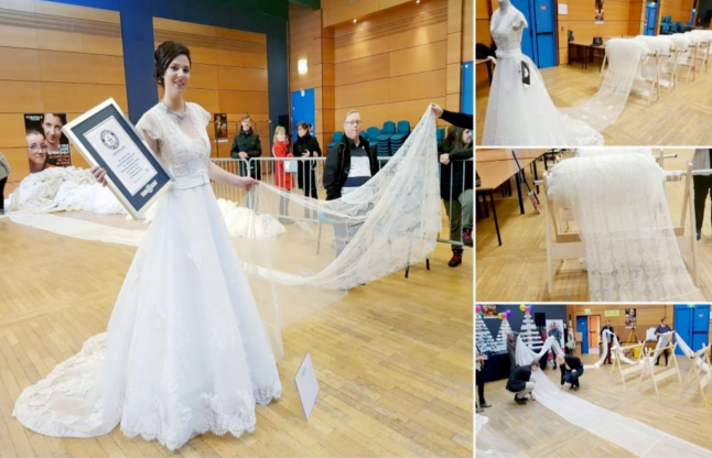 फ्रांस में बनी इस वेडिंग ड्रेस की तस्वीर को 'गिनीज बुक ऑफ वर्ल्ड रिकॉर्ड' के पेज द्वारा पोस्ट किया गया। इसके बारे में लिखा गया है कि यह दुनिया की सबसे बड़ी वेडिंग ड्रेस है जो लगभग पूरा माउंट एवरेस्ट को भी ढंक सकती है।