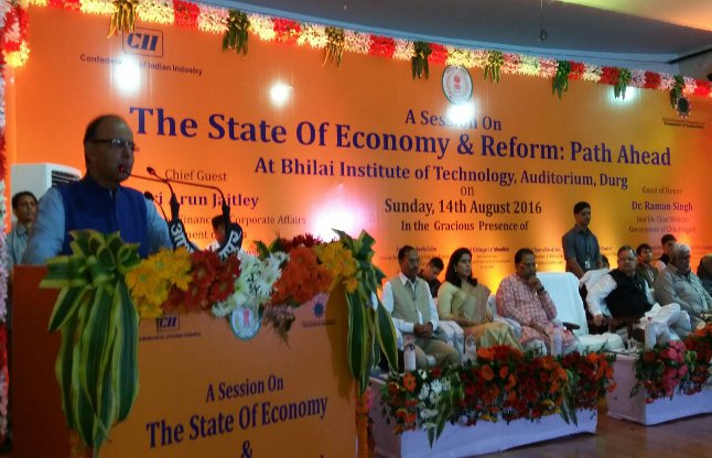 आर्थिक सुधार के लिए टैक्स प्रणाली में पारदर्शिता पर जोर देते हुए कहा कि सरकार को नाजायज टैक्स लेने और लोगों को जायज टैक्स रोकने का अधिकार नहीं है। वित्त मंत्री ने छत्तीसगढ़ को हर तरह से समृद्ध राज्य बताते हुए कहा कि राज्य की अर्थव्यवस्था देश के विकास में मदद करेगी। कार्यक्रम में मुख्यमंत्री डॉ. रमन सिंह उद्योग मंत्री अमर अग्रवाल, प्रेमप्रकाश पांडे, रामशिला साहू, सरोज पांडे सावला राम डाहरे, अरुण वोरा आदि मौजूद थे।