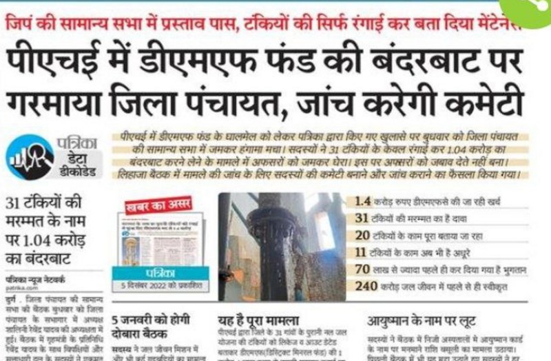 गौरतलब है कि जिले के 203 गांवों में पहले से ही नल जल योजना संचालित है। यहां करोड़ों खर्च कर पेयजल सप्लाई का स्ट्रक्चर तैयार किया गया है। इनमें से अधिकतर स्ट्रक्चर से अब तक पानी की सप्लाई हो रहा था, लेकिन अब मिशन के नाम पर इन गांवों में पुराने स्ट्रक्चर की जगह फिर से करोड़ों खर्च कर नई पाइप लाइन डाला जा रहा है। इतना ही नहीं पहले से ही जिन घरों मे नल कनेक्शन हैं, उन्हें भी नए सिरे से कनेक्शन लेने के लिए बाध्य किया जा रहा है। इससे न सिर्फ सरकारी धन का दुरूपयोग हो रहा है बल्कि लोगों को भी आर्थिक चोट पहुंचाई जा रही है।