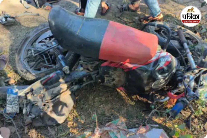 दुर्ग में हाइवा-बाइक की टक्कर (photo source- Patrika)