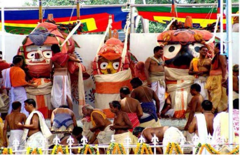 5.पौराणिक मान्यताओं के अनुसार भगवान जगन्नाथ के स्नान कार्यक्रम के बाद भगवान बीमार पड़ जाते हैं। इसलिए वे 15 दिनों के एकांतवास पर मंदिर में एक अलग कमरे में रहते हैं। स्वास्थ लाभ के करीब एक महीने बाद वे रथ यात्रा के दौरान वे दोबारा मंदिर से निकलकर भक्तों को दर्शन देने आते हैं।